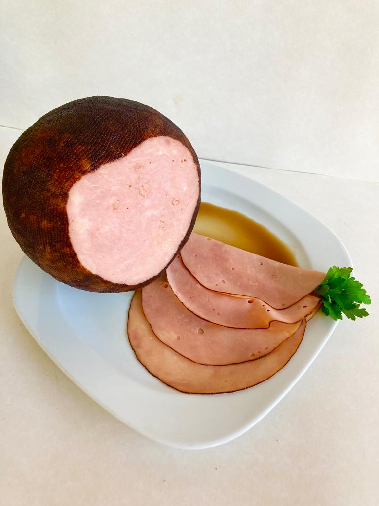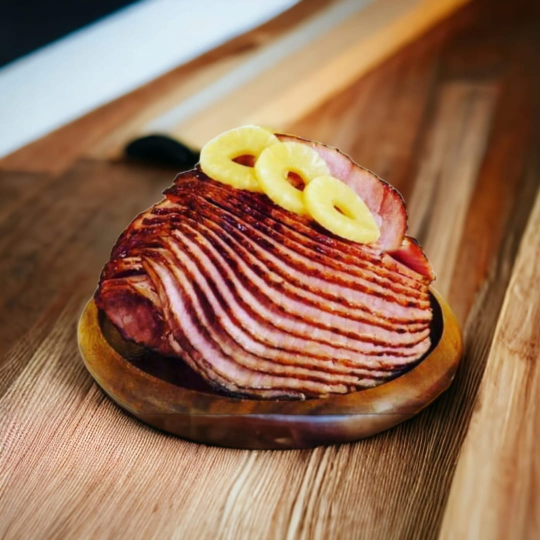 Pierna envinada rebanada Fritz, jamón de pierna de cerdo horneada y cubierta con una deliciosa salsa de vino, jerez y melaza que hacen de este platillo una delicia gourmet.